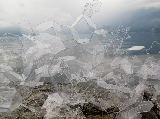 The photo spread «adaptation of a model» shows the sculpture executed through "technical images" (Flusser) implemented into reality. Through the act of taking a actual photograph of the model in a countriside, both model and reality will be again united as one image.